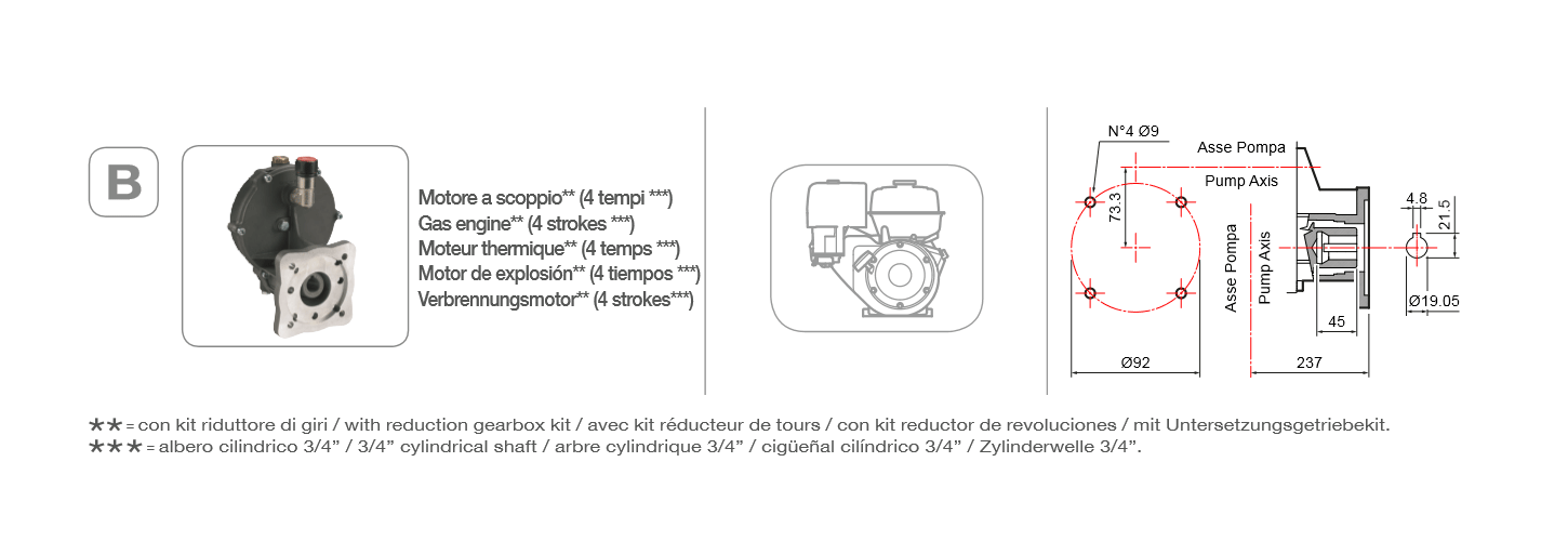 Parts in contact with spray liquid: polypropylene and AISI 316-L stainless steel on P 36/10, polyamide and stainless steel on P 36/15.
